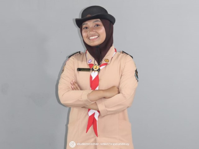 Dia mengikuti organisasi pramuka di SMKN 1 Cipeundeuy, dia menjabat sebagai krani atau bisa di sebut sebagai sekertaris, dia terbilang sebagai wanita yang memiliki jiwa kepemimpinan, mandiri dan pemikirannya yang luas. Di kelasnya juga dia terbilang sebagai anak yang pintar atau berprestasi, aktif dan mudah akrab dengan lingkungan yang ada di sekitarnya.